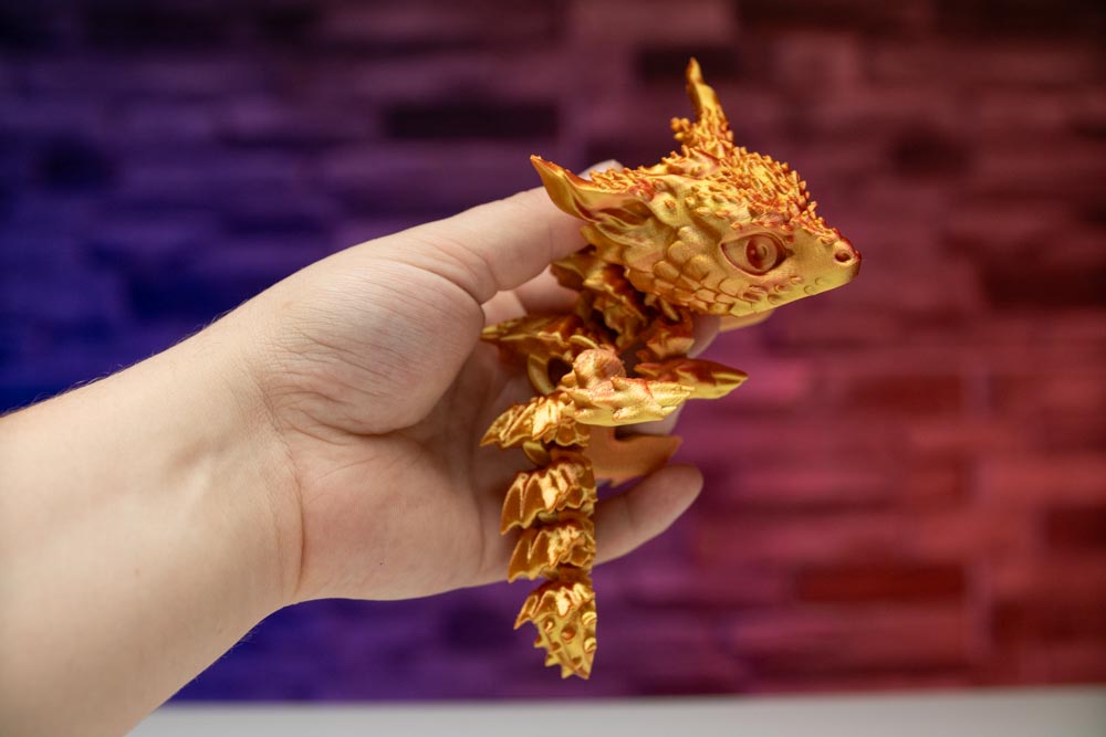 If you are interested in adding this beautiful desert baby dragon model to your collection of 3D printed dragons or giving it as a gift, we offer you the opportunity to download the STL file for the Articulated Desert Baby Dragon via the link below. Follow the link and embark on your journey into the world of 3D printing, where you can print and explore this fascinating art. The dragon prints easily in one go as a print-in-place model. You simply remove it from the bed, with no need for gluing or assembly. This 3D Printed Dragon is ready to play with right away.