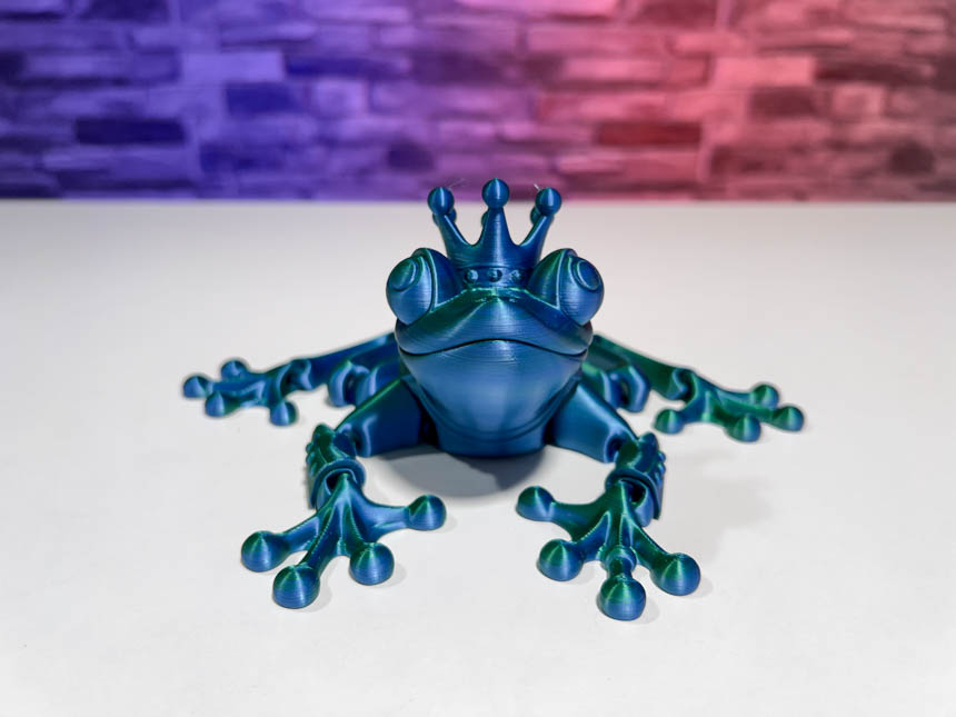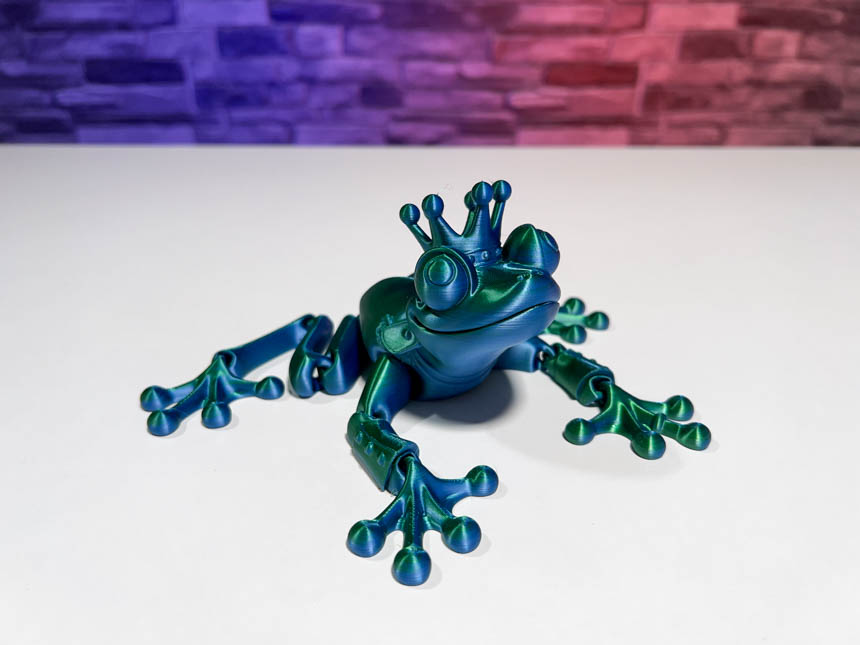 Introducing the 3D Print Frog, an incredibly cute frog figurine that will capture the hearts of both kids and adults. This delightful figurine is 3D printed and features movable legs and a detailed crown on its head, making it a charming and interactive piece. The 3D Print Frog Prince can make a perfect addition to your collection of movable animal figures or serve as a great anti-stress toy for restless hands.