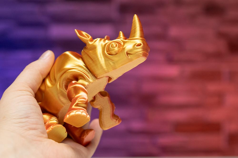 Embark on a journey of discovery and conservation with the Articulated Rhino, where the radiant hues of golden and copper meet the intricate design and dynamic poseability of 3D printing. This majestic creature, with its regal presence and metallic elegance, stands as a guardian of the wild, inspiring admiration and advocacy for the preservation of Earths precious wildlife. Its a reminder that every creature, no matter how mighty, deserves our respect, our protection, and our unwavering commitment to ensuring a future where they can thrive in peace and harmony.