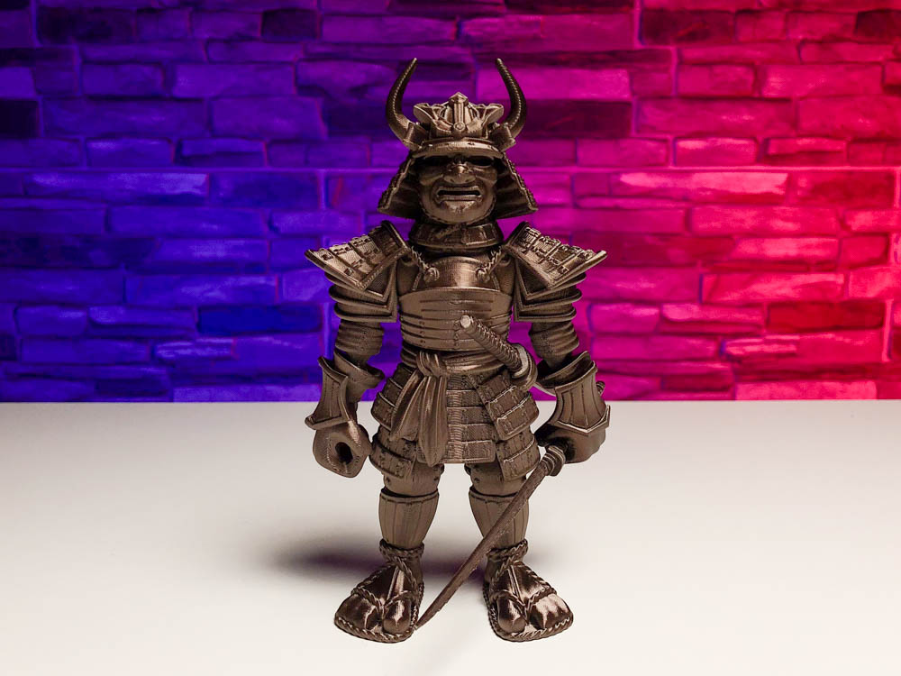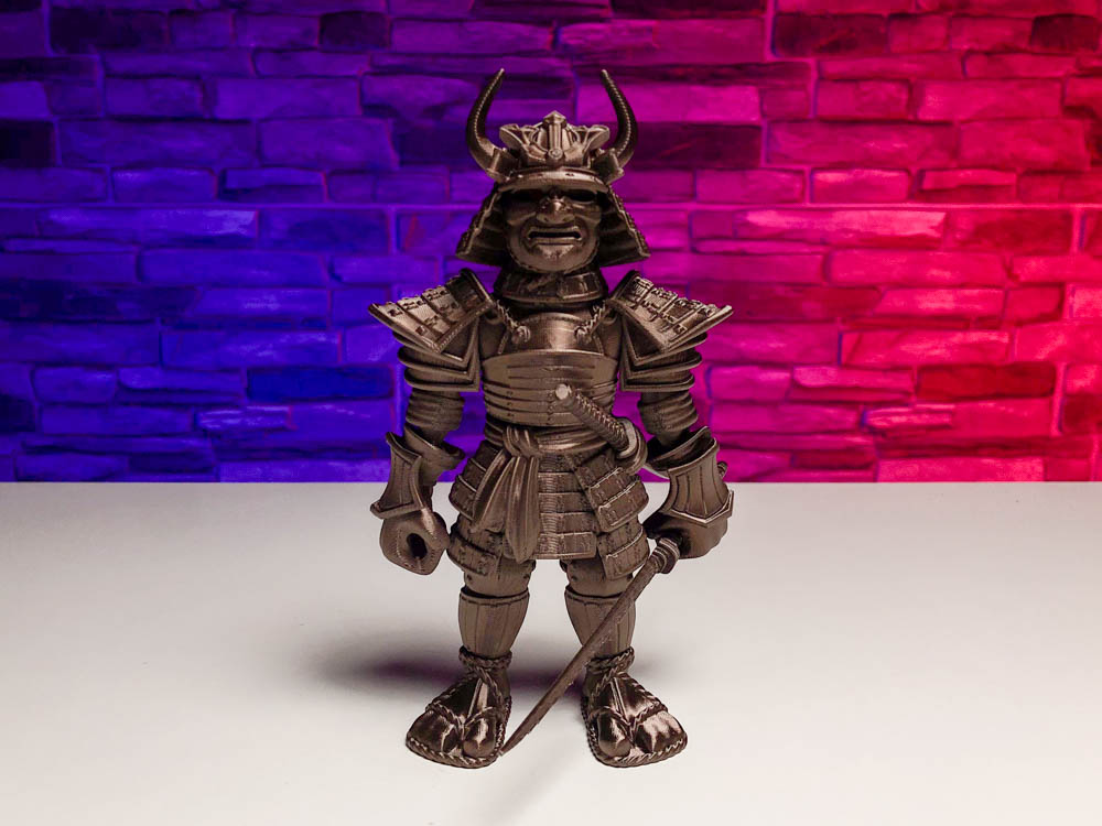 The 3D Printed Articulated Dark Gold Samurai stands as a tribute to the fusion of tradition and technological progress, marrying the historical significance of the samurai with the cutting-edge capabilities of 3D printing. It embodies the spirit of innovation, demonstrating how contemporary technology can breathe new life into ancient legends, making them accessible and relevant for todays generation.