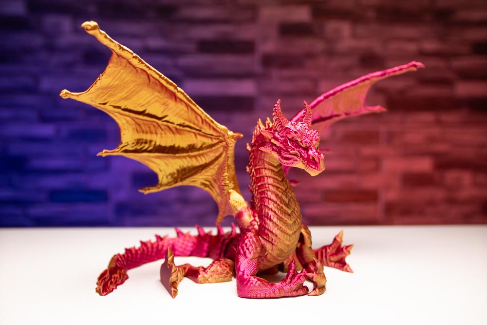 For this project, we chose a two-tone shadow gold-red filament that brings beautiful transitions and gives the 3D Printed Epic Articulated Dragon an almost magical appearance. This filament was selected to highlight every detail of the model, from the scales to the eyes of the dragon, while giving the model a royal and fiery look.