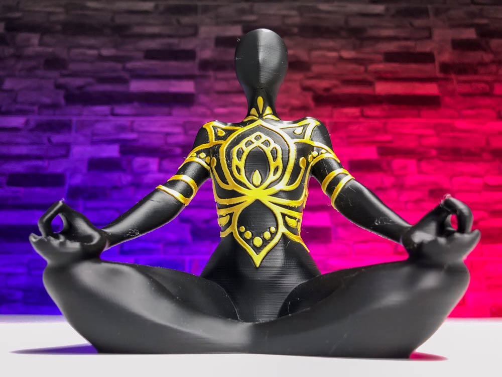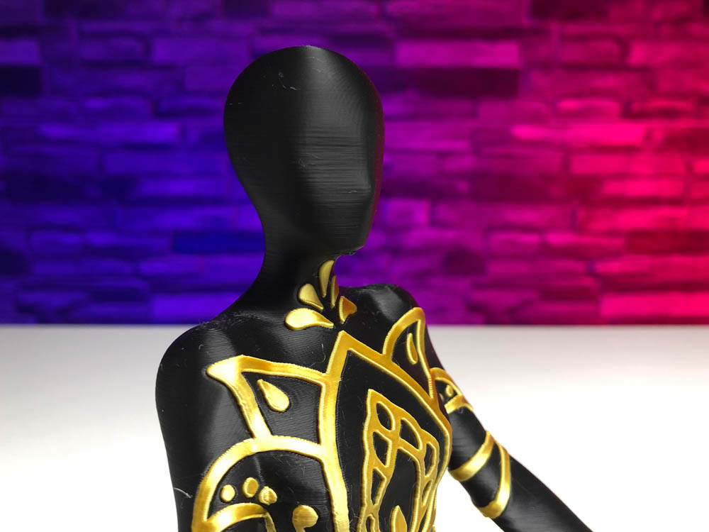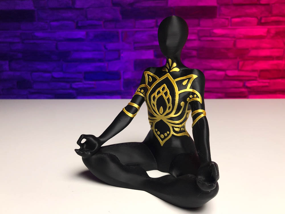 The 3D Printed Multicolor Yoga Woman is a masterpiece of detail, showcasing the precision possible with modern 3D printing techniques. Each curve, muscle, and line of the yoga pose is captured with clarity, reflecting the beauty of the human form in motion. The vibrant contrast between the golden and black colors emphasizes the models dynamic lines, adding an element of elegance and power that is both captivating and inspiring.