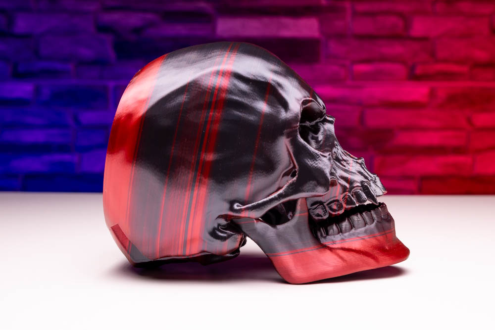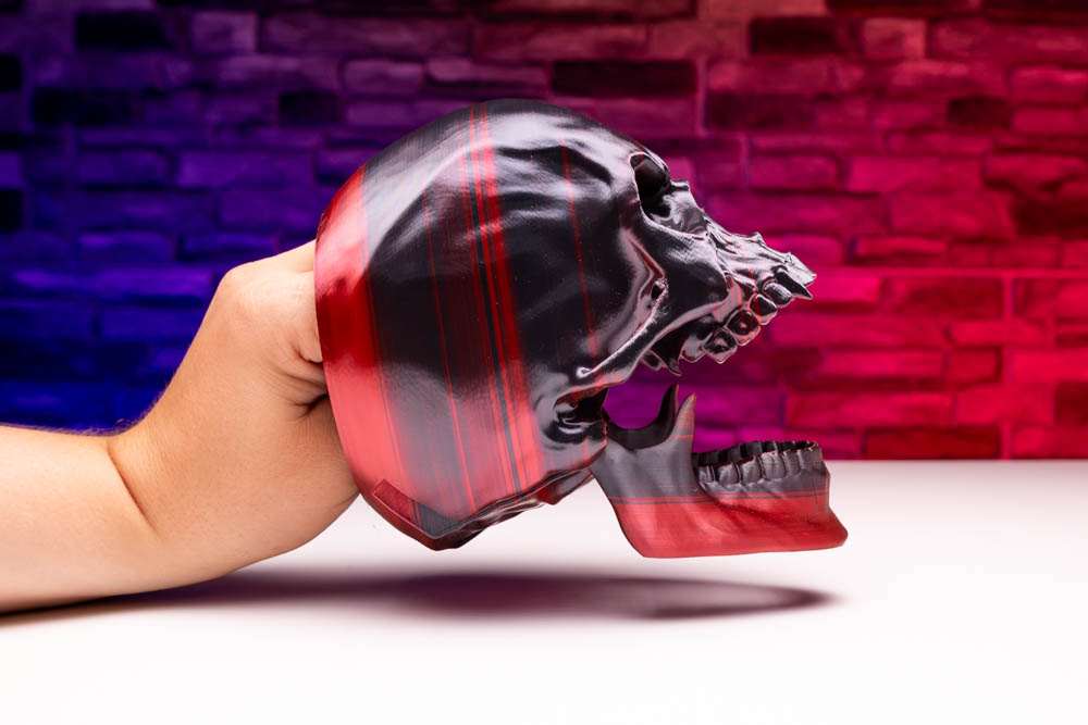 Transform your space with this striking 3D print Skull! Perfect for those who love a touch of the macabre, this stunning piece combines gothic aesthetics with vibrant color. It is a statement piece that is sure to catch everyones eye.
