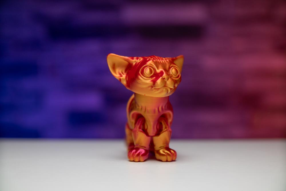 We printed the 3D Printed Sphinx Cat from high-quality Shadow two-tone PLA filament, focusing on detail and precision. To preserve as much detail as possible, we printed each layer at a resolution of 0.16mm with a nozzle size of 0.4mm. Each head is designed to be easily interchangeable while providing a high level of detail and realism.
