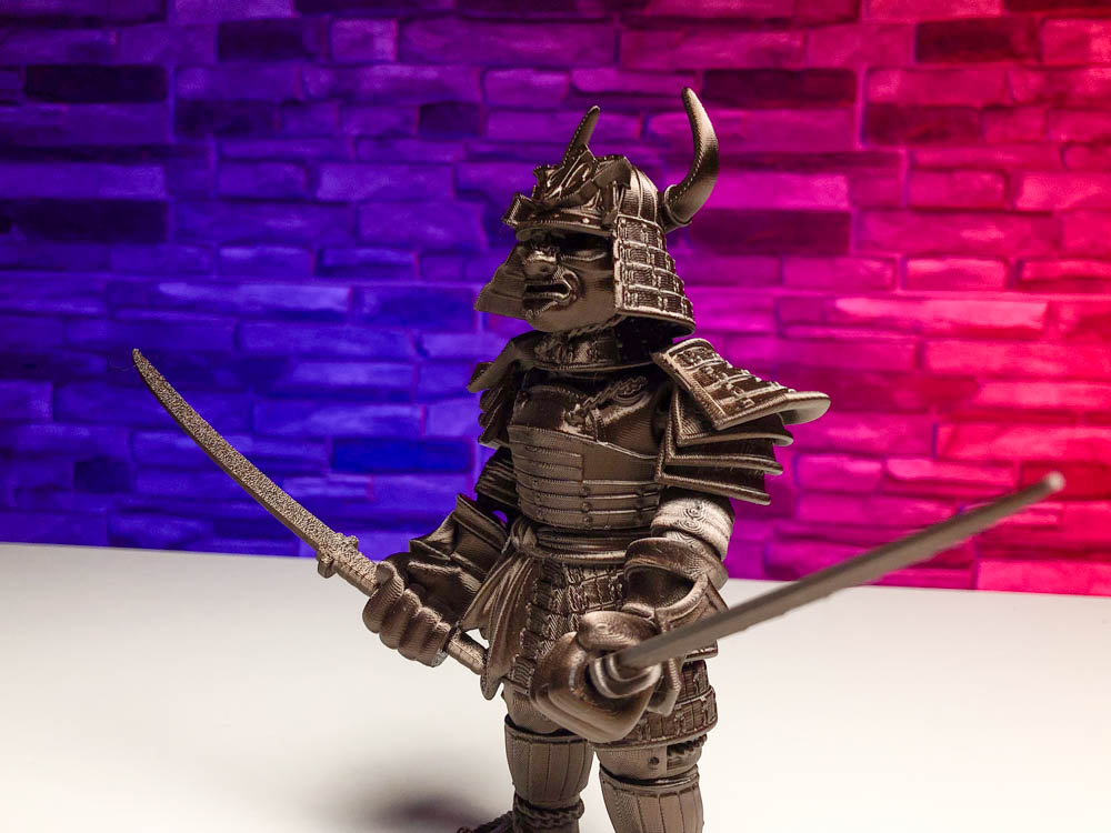The 3D Printed Articulated Dark Gold Samurai stands as a tribute to the fusion of tradition and technological progress, marrying the historical significance of the samurai with the cutting-edge capabilities of 3D printing. It embodies the spirit of innovation, demonstrating how contemporary technology can breathe new life into ancient legends, making them accessible and relevant for todays generation.